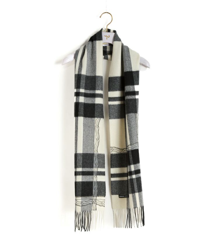 カシミヤ100%の軽く柔らかな風合いが心地よいストール。トラッドなチェック柄を大柄にアレンジしたような、上品で洗練された柄使いが魅力。フランス「Solstiss社」の繊細なリバーレースをさりげなくあしらい、エレガントな上質感をプラスしました。穏やかな色合いとリラクシーな女性らしさが引き立ち、大人カジュアルを華のある装いへと導いてくれる、この秋冬おすすめの一枚。さらっと羽織るように巻いても、首もとをふんわり包むように巻いても美しく、アレンジしやすいサイズ感です。ちらりとのぞくレースの小さなアクセントにも心が癒され、端に施されたやわらかなフリンジも、細やかで丁寧な仕上がりで、心地よくお使いいただけます。