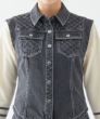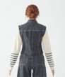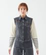 トレンドシルエットのデニムベスト。ニードル風の加工を部分的に施しました。短めの丈がボトムスを選ばず、脚長効果、スタイルアップも叶います。カラーは程よい色落ちがこなれ感を演出し、どんなアイテムとも好相性。シーズンレスで活躍し重宝する一枚です。同素材のパンツも展開中で、セットアップでの着用もおすすめです。※加工の特性上、色の見え方が異なる場合がございます。