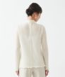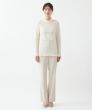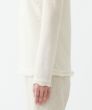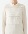 アンティーク調のレースが印象的な、肌ざわりの良い長袖インナー。キックバックの良いウールとナイロンを使用したイタリア「ALTO MILANESE社」ニット地で、程よいシアー感と繊細さを表現。しなやかさと温かみがある柔らかな着心地です。やさしいアイボリーカラーの上に立体的に浮き立つようにレースをあしらうことで、上品さと華やかさが際立つ一着に。襟元にはふんわりと重なる2枚のフリルを施し、お顔まわりを明るく演出。袖口と裾にもやわらかいフリルをあしらい、インでもアウトでも、さりげない特別感が漂います。