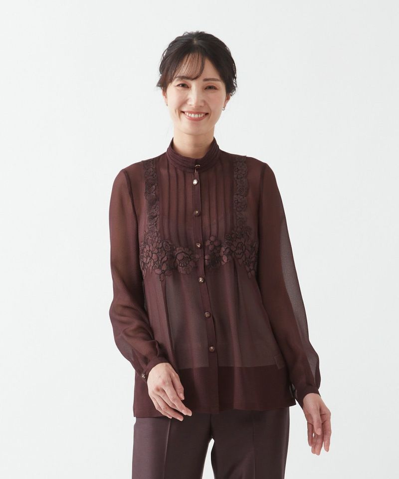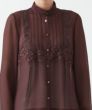 シルクに特化したイタリアのテキスタイルメーカー「Serica社」による、シルク100%のテキスタイルを贅沢に使用したブラウス。シルクならではの繊細なテクスチャーと、ボルドーで織り成す透明感のある奥行きが印象的です。フロントにはフランス「Solstiss社」のリバーレースをあしらい、柔らかな華やぎとともに凛とした女性らしさを添えました。一枚でお召いただいても特別感があり、同シリーズのパンツやベスト、ジャケット、コートとのコーディネートで、さらに品格ある装いをお楽しみいただけます。