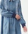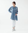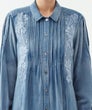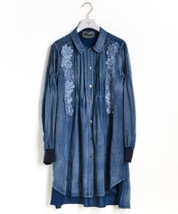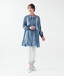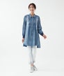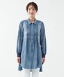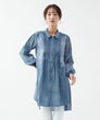 「レースとタックが奏でる、大人のデニムエレガンス。」フロントに重ねたレースとピンタックが縦ラインを生み、すっきり見える上品シルエットに。