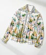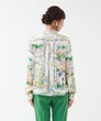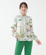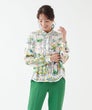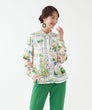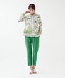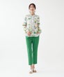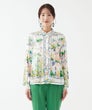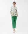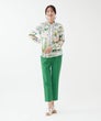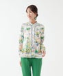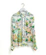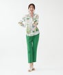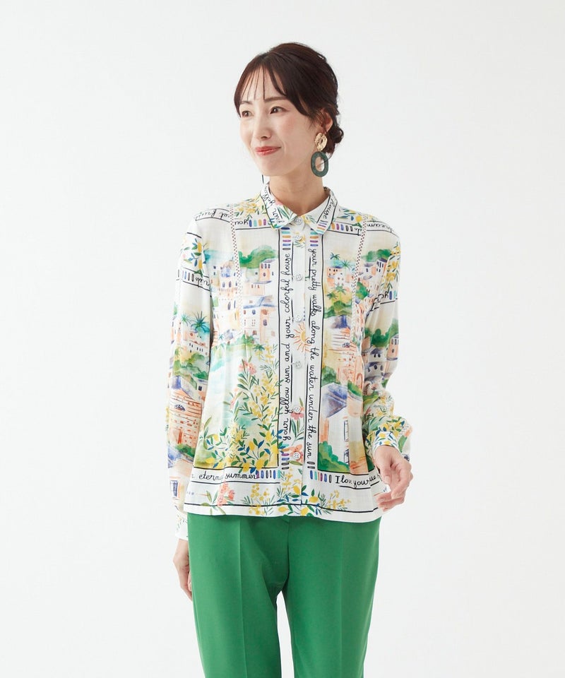 「夏色の景色を纏う、軽やかなエレガンス。」フランス製生地ならではの透明感ある色彩が、顔まわりを優しく華やかに演出。スカーフのようなパネルプリントが、装いにリゾートの余裕を添えてくれます。