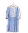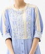 「軽やかに揺れる、刺繍の陰影と柔らかな風合い。」葉を描いた刺繍がほんのり浮かび上がるエンブロイダリー素材と、表情豊かなランダムストライプの組み合わせ。さらりと肌に馴染むコットンが、季節を問わず心地よい軽さを届けてくれます。