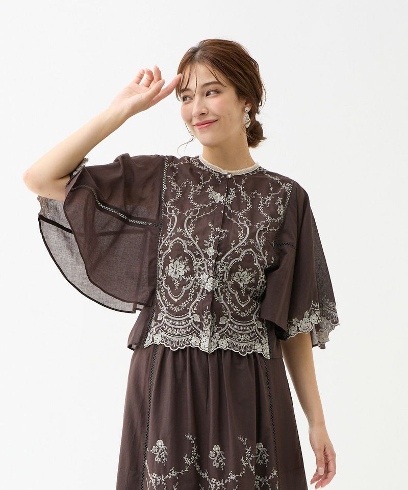 「フランス刺繍が描く、静かな華やぎ。」フランスGUEGAIN社のエンブロイダリーを贅沢に使用した、品格漂う刺繍ブラウス。繊細な図柄が立体的に浮かび上がり、コットン100%の基布がその美しさを引き立てます。深みのある色合いに刺繍の陰影が重なり、装いに奥行きと余韻を与える一枚です。