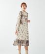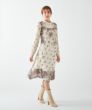 小花を織り上げたジャガードに、イタリア「Erica社」による優美なパネルプリントを重ねた、気品あふれるワンピース。グラデーションが描くフラワープリントのコントラストが奥行きを生み、大人の品格を際立たせます。レーヨン特有のしなやかなジャガード素材は、しっとりとした落ち感と軽やかなラグジュアリー感を兼ね備え、動きに合わせて美しく揺れるシルエットに。切替えによる肩や胸元の自然なコントラストが、ボディーラインをすっきりと見せてくれます。華やかさと躍動感がフレッシュな雰囲気を引き立てます。襟元はふんわりと折り返されたエレガントなデザインで、シンプルながらもモダンな華やかさを演出。胸もとにはフランス「GUEGAIN社」のエンブロイダリーレースを優しい色合いで配し、他にはない品格を感じさせるワンピースとなっております。ご友人とのお集まりや、社交シーン、改まった場でもお召しいただけるエレガントな一枚です。