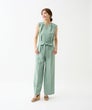 「着るだけで、すっと整う。」襟ぐりのタックと縦のラインが、自然にスタイルアップ。身体のラインを拾いすぎず、美しく見せる計算された設計。ベルトは取り外し可能で、印象の変化も楽しめます。