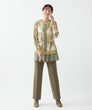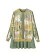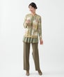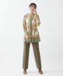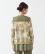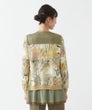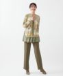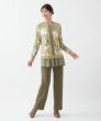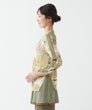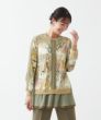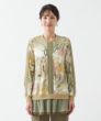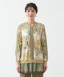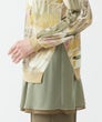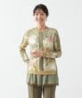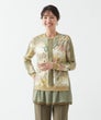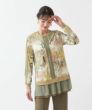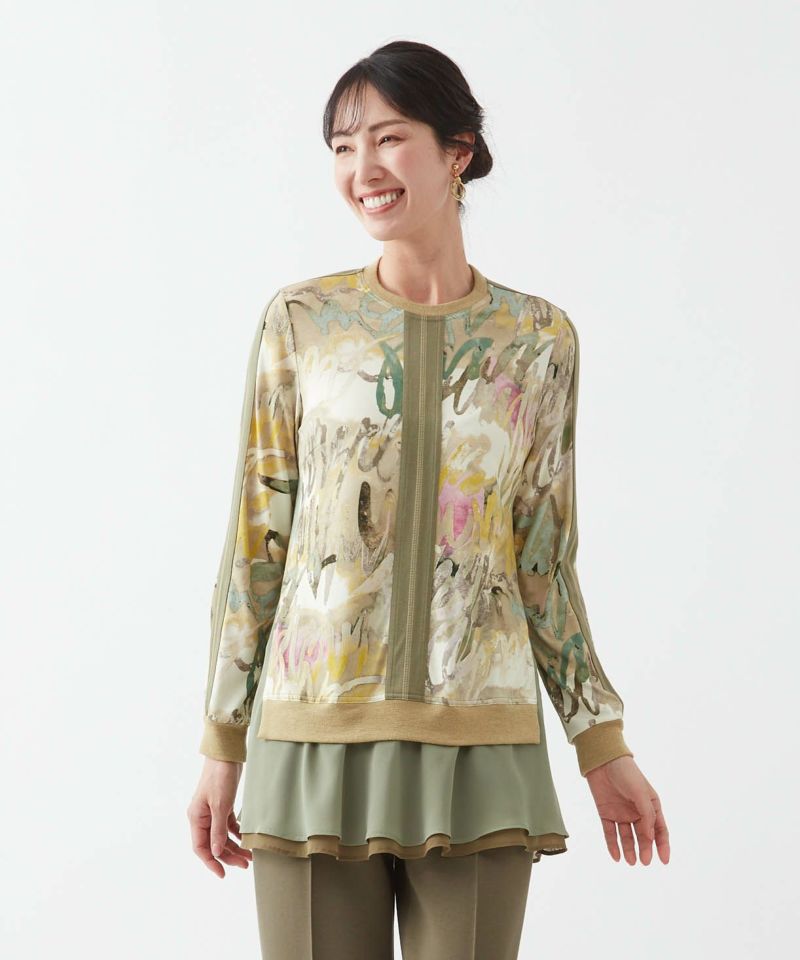 インポート素材ならではの楽しいプリント地と配色布が目を引く、遊び心溢れるトップス。生地の持つ綺麗な落ち感を活かして仕上げました。ヒップラインが隠れる程よい丈感で着回しやすく、重宝します。裾はシフォンを二枚重ねにし、軽やかさと抜け感をプラス。さっと袖を通すだけでさまになり、カジュアルにもきれいめにも品よくマッチする一枚です。