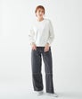 心地よい伸縮性とクッション性を持つ素材に、綿麻デニムを組み合わせた異素材切り替えが魅力のトップス。フロントにはシルバー箔プリントをあしらい、カジュアルなトレンド感をプラス。襟と袖口にはやわらかなコットンリブを使用し、肌あたりが心地よい仕様。シルエットは程よいリラックス感とフィット感のバランスが絶妙で、快適な着心地に仕上がっています。パンツやスカートに合わせやすい着丈で、デニムのボトムスやジャケットとも好相性。ジャケットのインナーとしても、さりげない存在感と個性をのぞかせます。