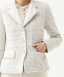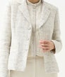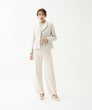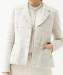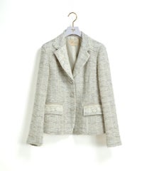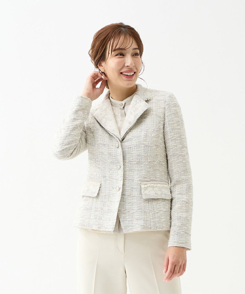 「やわらかな光をまとったような、穏やかな美しさ。」淡い色合いが重なり合い、上品な明るさをもたらすジャケット。端正に整えられた襟元が装いに品のよさを添え、落ち着きのある佇まいを演出します。