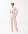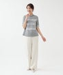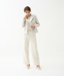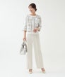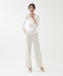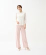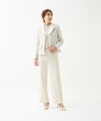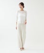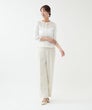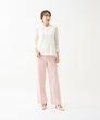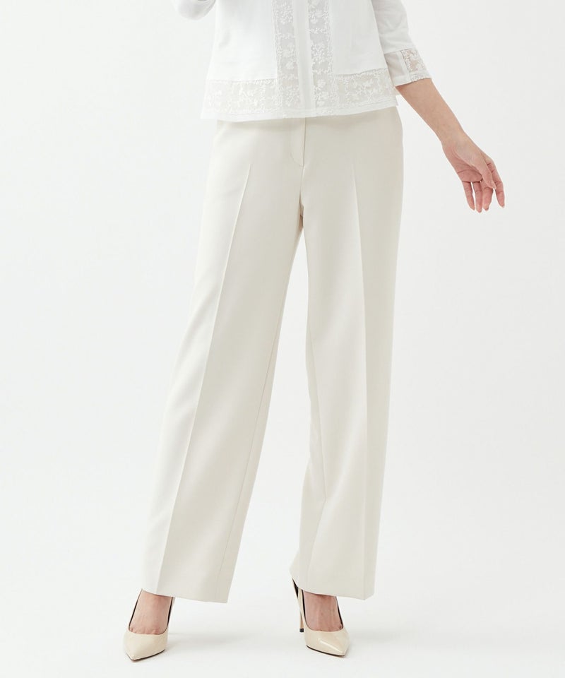 「静かに、脚線美をつくる。」フロントとバックに施した縦ラインのセンタープレスが、脚をすっと長く演出。身体のラインを拾わず、端正で洗練された印象に導きます。