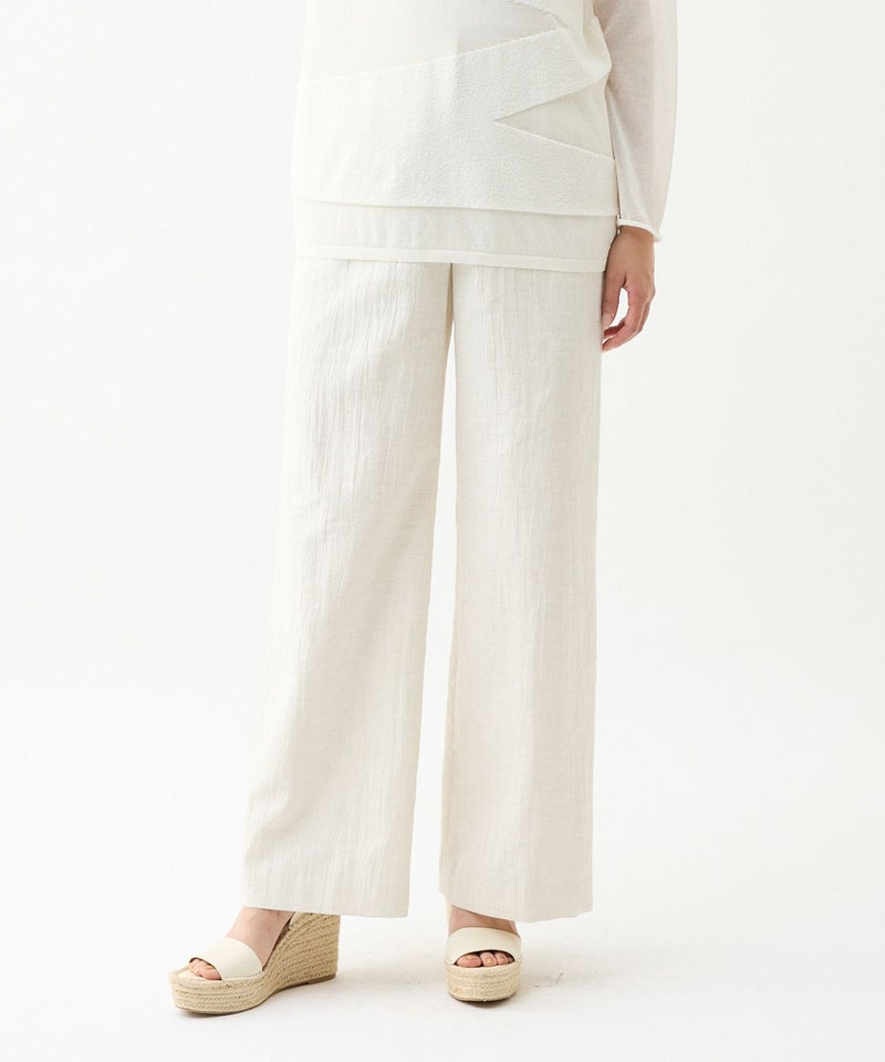 「きちんと見えて、実はラク。」サイドウエストはゴム仕様で、締めつけ感のない快適な穿き心地。長時間の着用でもストレスを感じにくく、動きやすさと美しいシルエットを両立しました。