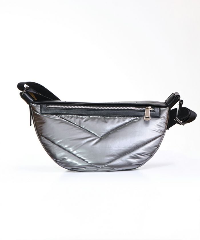 未来感あふれる光沢と、機能性を兼ね備えた、ROBERTA GANDOLFI のシャイニーキルティング・クロスボディバッグ。滑らかなメタリック素材にV字のキルティングステッチが映える、洗練されたデザインが特長です。軽量で持ちやすく、普段使いからトラベルシーンまで幅広く活躍します。
