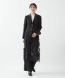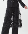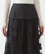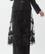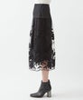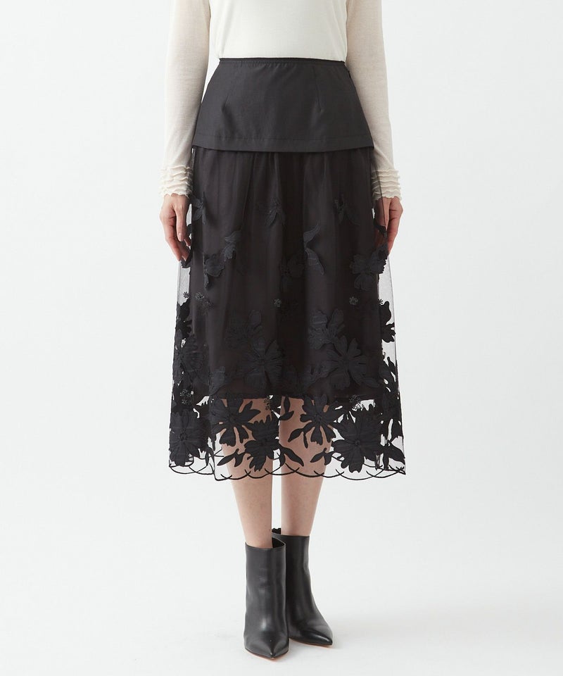 フランス「GUEGAIN社」へ特別オーダーしたオリジナルレースを使用したスカート。透明感のあるチュールに、タフタ素材をカットワークで施した花々が舞うように浮かび上がり、ラメ糸であしらった小花がさらに繊細な煌めきを添えています。大ぶりのスカラップ刺繍をすっきりとあしらい、ミニマルで洗練された印象に。本体とペチコートは取り外し可能で、パンツやレギンスの上にレイヤードする今年らしい着こなしもおすすめ。シアーなレースの存在感がより際立ち、軽やかで個性的なスタイルが楽しめます。スタイリング次第で、ドレッシーにもカジュアルにも。