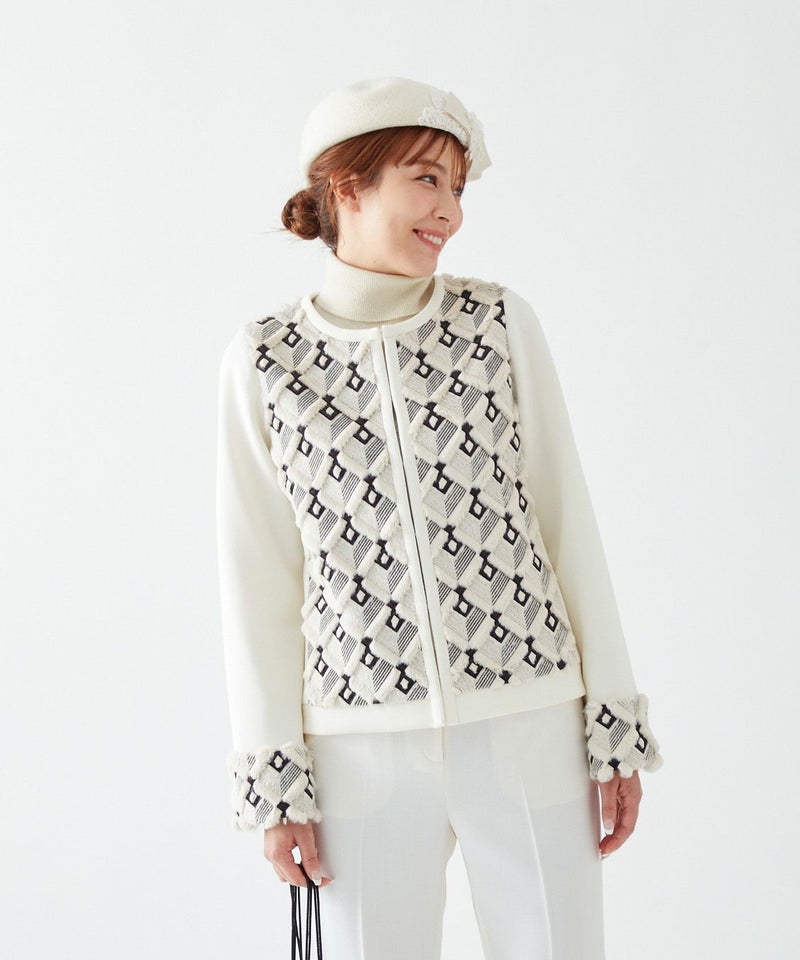 【Rossa】刺繍フェイクファー使いジャケット