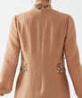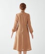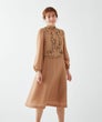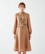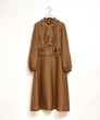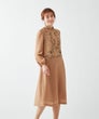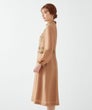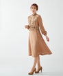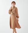 上質なウールとシルク混の素材が生み出す、艶と透明感、ほどよく滑らかなハリが魅力のイタリア「LINEAESSE社」のテキスタイルを使用。さらに、フランス「GUEGAIN社」へ特別オーダーしたオリジナルレースをあしらい、エレガントなシルエットのワンピースに、繊細で生命力のあるヨーロッパレースの美しさを重ねました。上品なデザインで、ご友人との集まりや、社交シーンでもお召しいただける一枚。キャメルベージュの落ち着いたトーンは、年代を問わず多くの女性に愛されるトレンドカラー。リラクシーで洗練された大人の女性像を演出します。同系色の上質なコートと合わせたワントーンコーディネートもおすすめ。