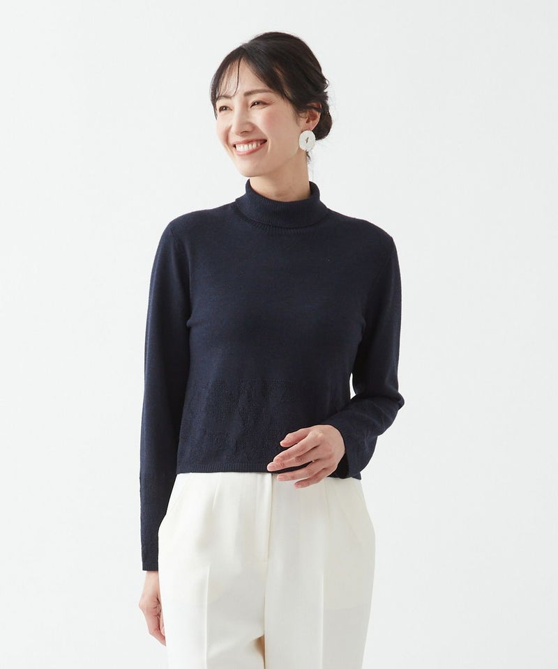 繊細な透かし編みジャガードが魅力の、軽やかな着心地のセーター。ニットならではの柔らかさと着心地の良さに加え、ハイネックのシンプルなシルエットが大人の落ち着きを演出します。ふんわりしたスカートと合わせても、すっきりとしたパンツやワイドパンツと合わせても、上品に着こなせる一枚。同シリーズのニットベスト、ニットスカートとの3点セットアップで、統一感のあるラグジュアリーなスタイルをお楽しみいただけます。