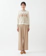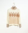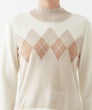 今シーズン注目のアーガイル柄を、上品な配色とラインストーン使いでエレガントに仕上げた一枚。4色3種の糸を贅沢に編み込み、豊かな表情感もプラス。一枚での着用はもちろん、インナーとしても長く着用していただけます。日常に特別感を添える、ワードローブに加えたいアイテム。同素材のニットジャケットも展開中で、アンサンブルでの着用もおすすめです。