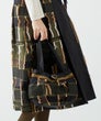 個性的なフリンジと、ランダムに現れるシアー感が印象的。大人の遊び心を感じさせるジャガード素材を使用したバッグです。透明感とハリがある軽やかな素材は、たっぷりと寄せたサイドタックによってふっくらと立体的なシルエットをキープ。柔らかな幅広の持ち手も扱いやすく、デイリーに使いやすいのも魅力。内側にはすっきりとしたタック無しの裏地と底板が施されており、安定感のある仕様です。開口部には個性を引き立てるトリミングブレードと、大ぶりのボタンがアクセントとなり、特別感と華やかさとプラスしています。同シリーズのジャンパースカートとセットでコーディネートすれば、より映えのあるスタイリングに。印象的な着こなしで、お出かけの気分がより高まります。