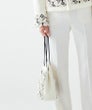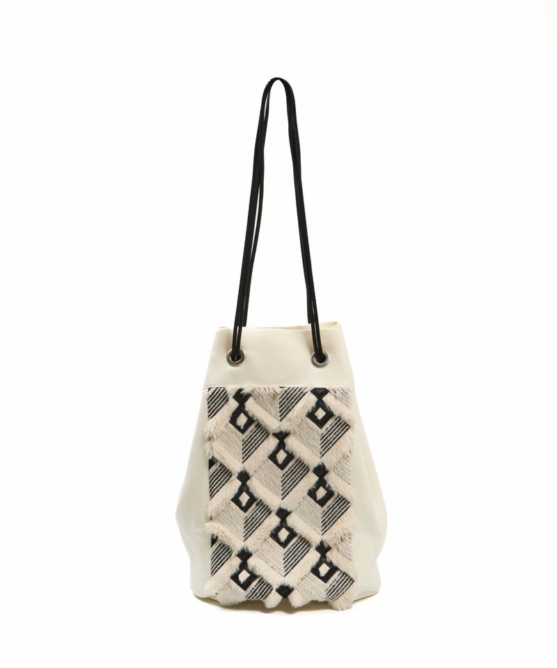 刺繍やレーザーカットを施した、特別なインポート素材の上質フェイクファーを使用した2WAYバッグ。片側の紐を寄せることで、ショルダーバッグとしても使用可能な便利な2WAY仕様。小ぶりながらも、お財布・スマートフォン・ハンカチなど、日常の必需品がしっかりと収まり、お散歩や普段使いにぴったりのサイズ感がうれしいバッグです。