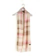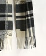 カシミヤ100%の軽く柔らかな風合いが心地よいストール。トラッドなチェック柄を大柄にアレンジしたような、上品で洗練された柄使いが魅力。フランス「Solstiss社」の繊細なリバーレースをさりげなくあしらい、エレガントな上質感をプラスしました。穏やかな色合いとリラクシーな女性らしさが引き立ち、大人カジュアルを華のある装いへと導いてくれる、この秋冬おすすめの一枚。さらっと羽織るように巻いても、首もとをふんわり包むように巻いても美しく、アレンジしやすいサイズ感です。ちらりとのぞくレースの小さなアクセントにも心が癒され、端に施されたやわらかなフリンジも、細やかで丁寧な仕上がりで、心地よくお使いいただけます。