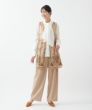 フランス「GUEGAIN社」へ特別オーダーしたオリジナルレースを使用したミドル丈のレースベスト。透明感あふれる繊細なヨーロッパレースで、生命力を感じさせる情趣ある一枚に仕上げました。落ち着いた色合いの小花刺繍が印象的で、ところどころにきらめく鈍色のブロンドラメがクラシックな深みを加え、大人のシックさと女性らしい可憐さを絶妙に融合。優雅なムードを演出し、コーディネートをさりげなく華やかに格上げしてくれるアイテムです。レースの繊細な透け感が、ヒップラインまで届くミドル丈を軽やかでリラクシーな印象に。裾まわりにあしらった小花モチーフのフラワー刺繍が、気品と共にシルエットをスマートに美しく際立たせてくれます。