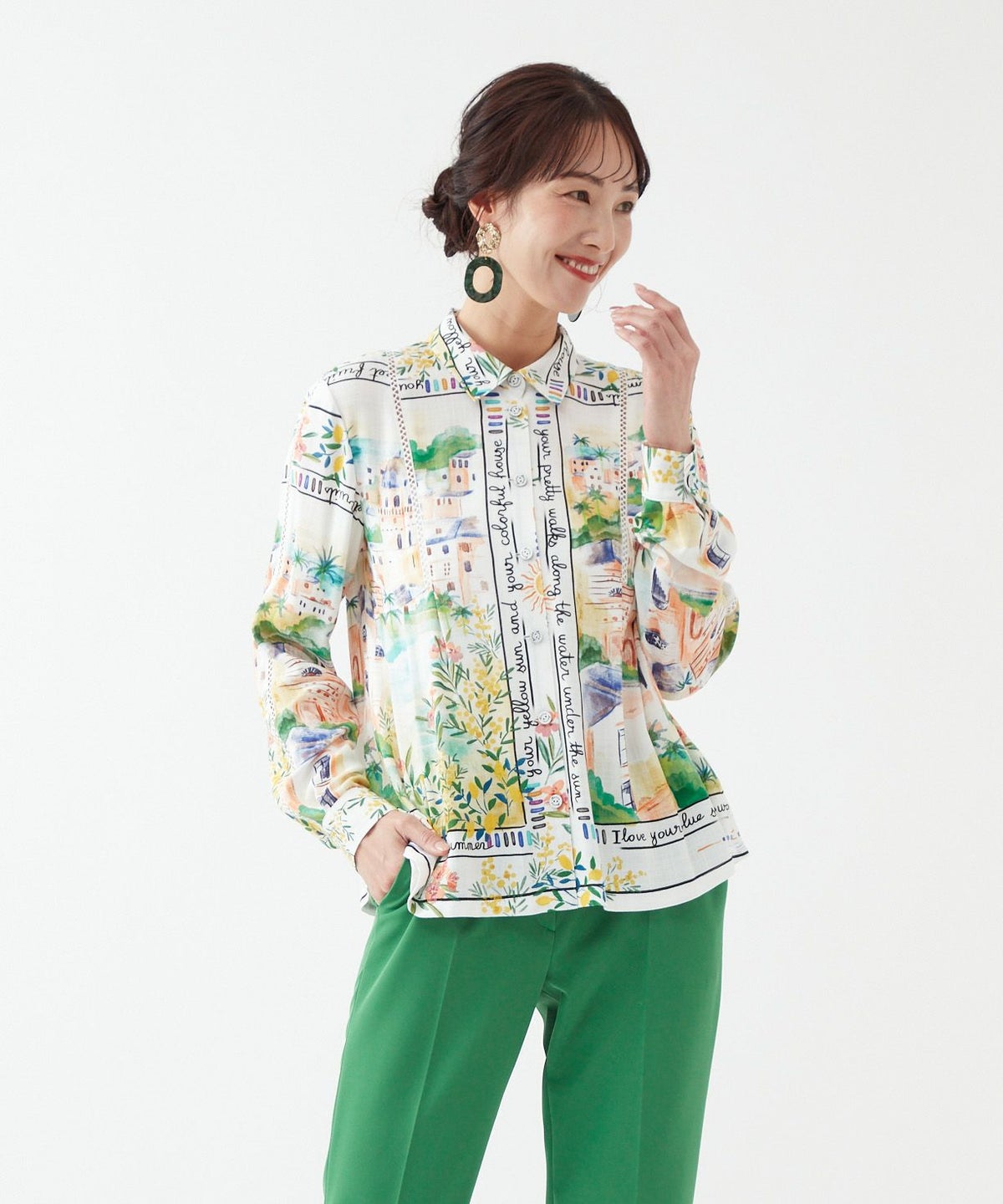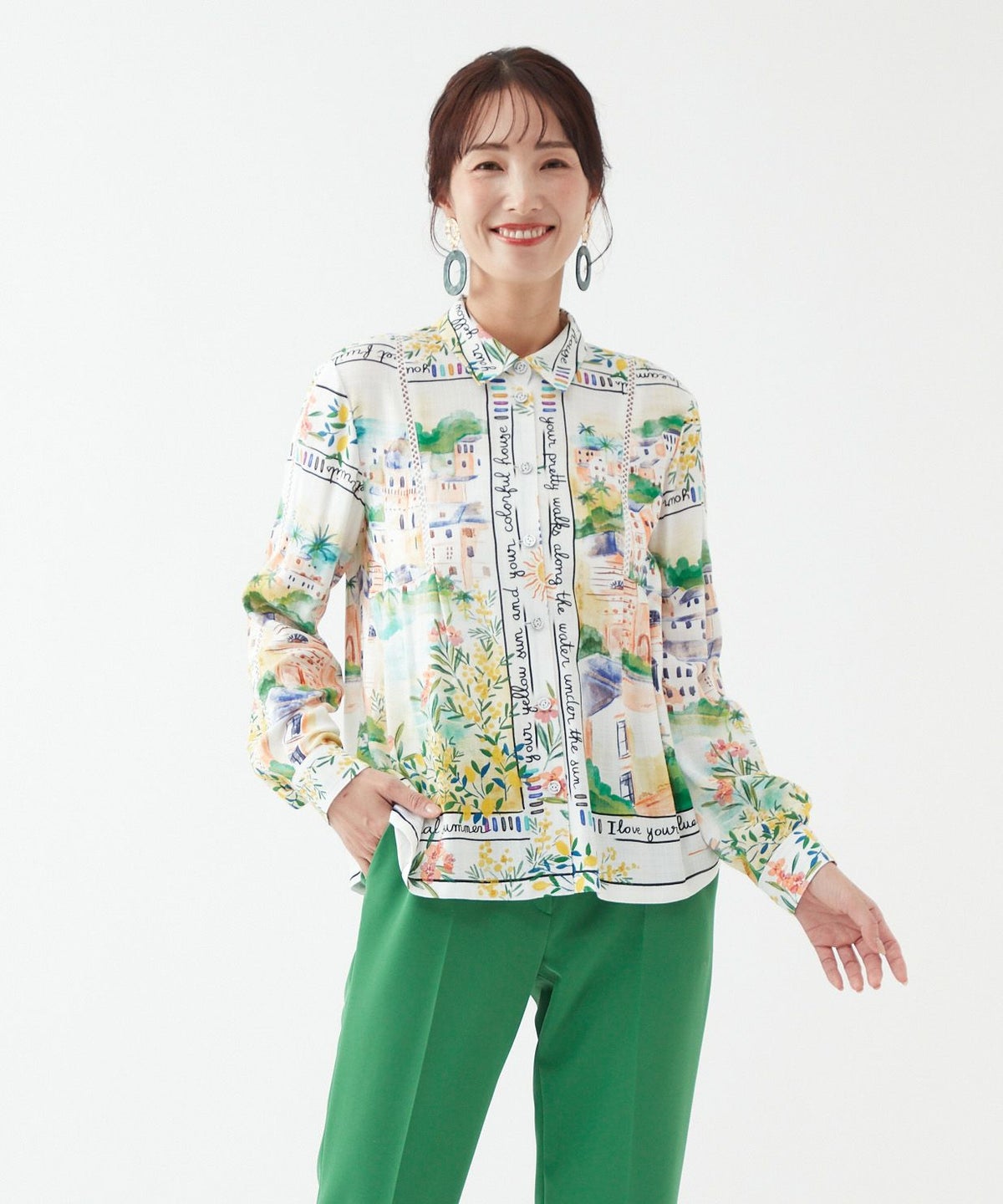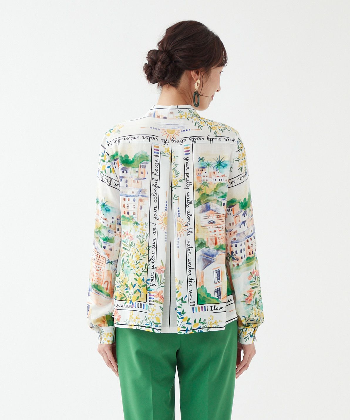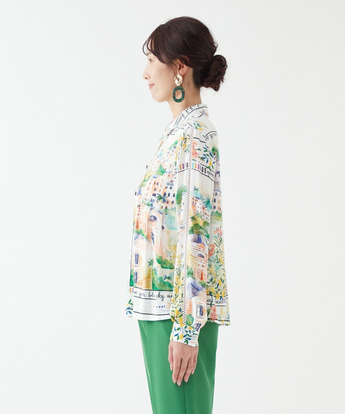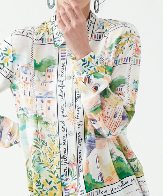 パネルプリントブラウス「Tableau Voyage」-Rossa-