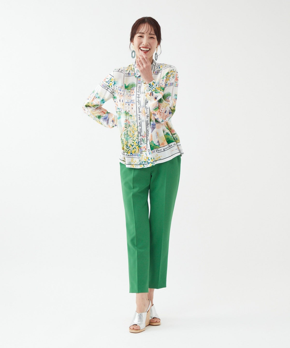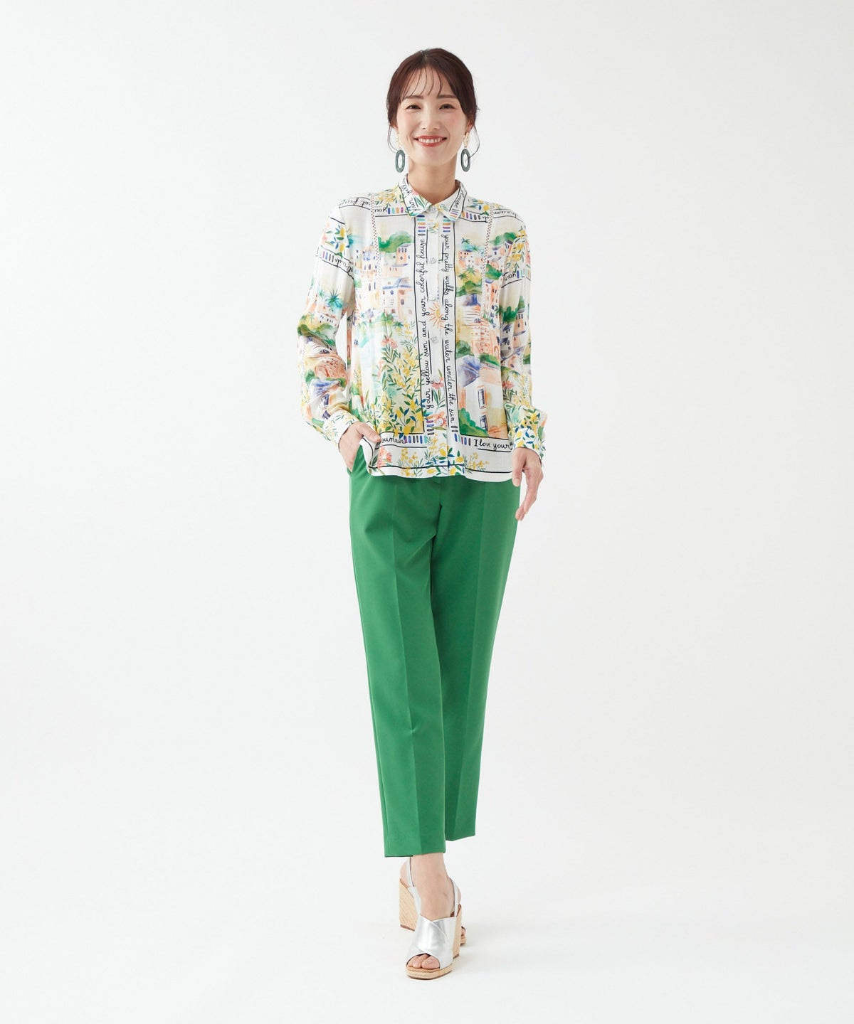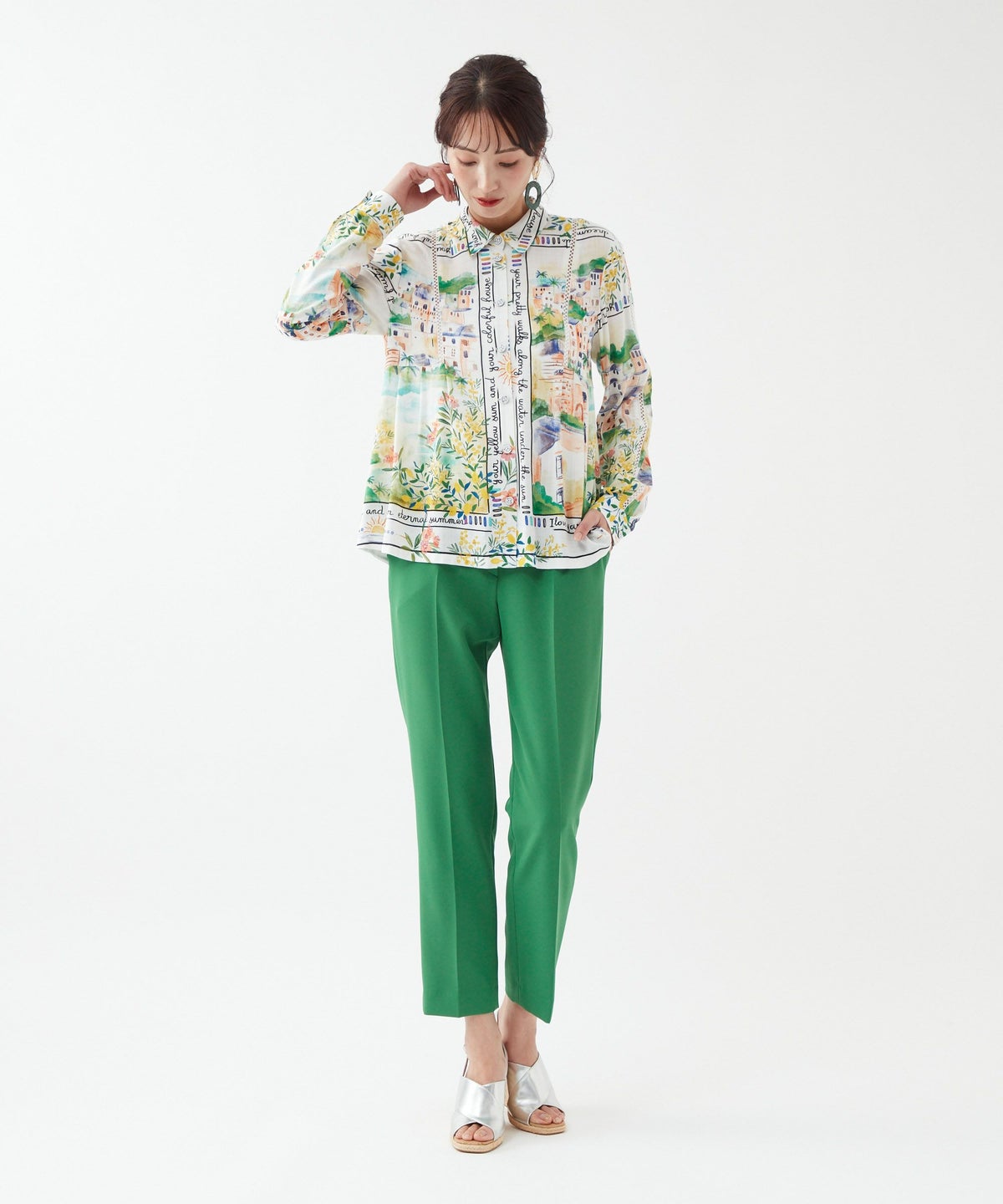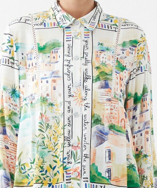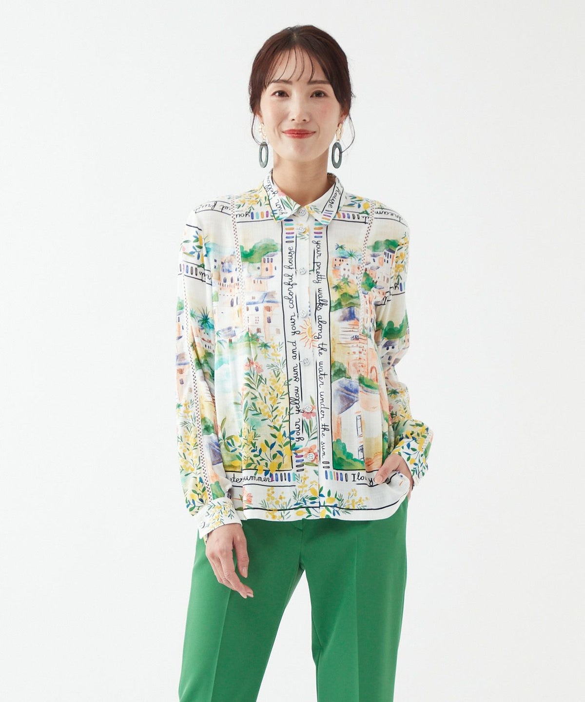 パネルプリントブラウス「Tableau Voyage」-Rossa-