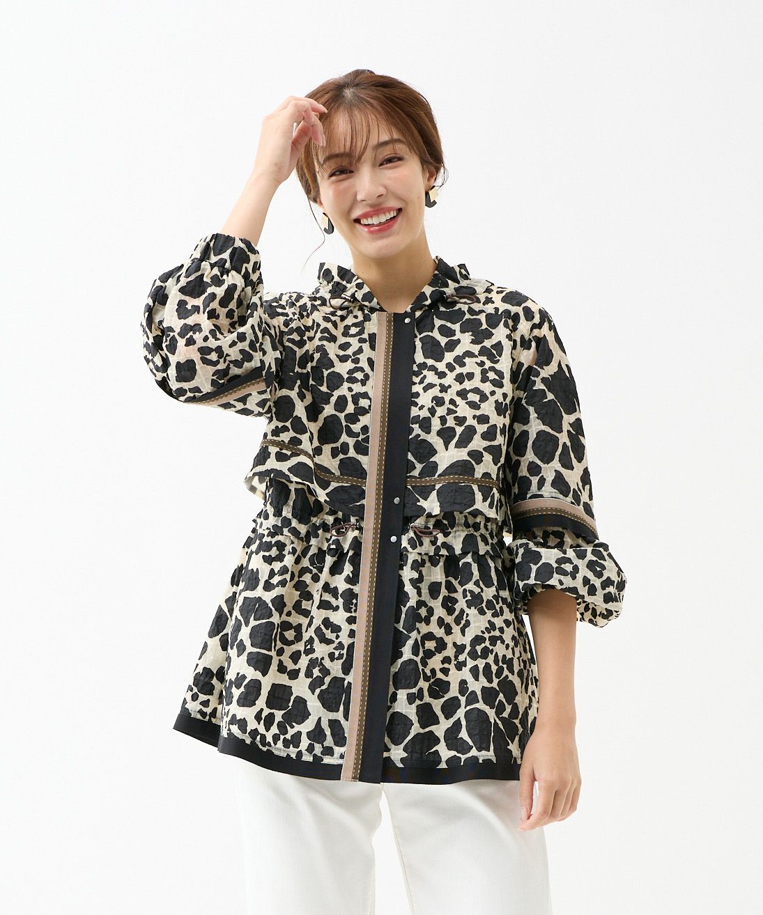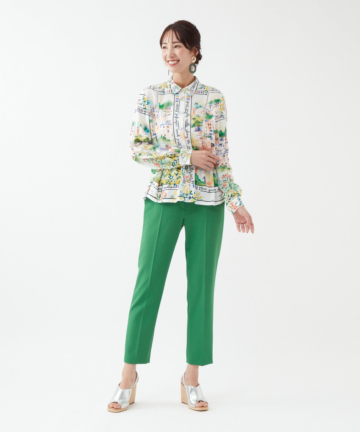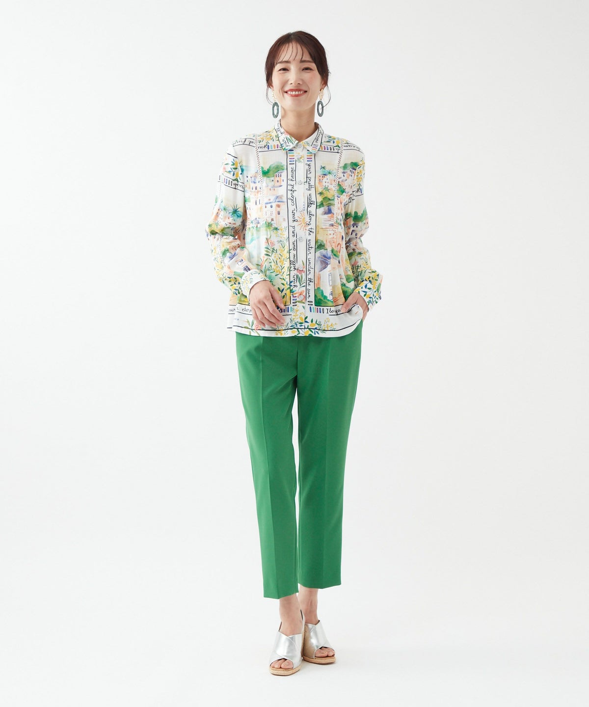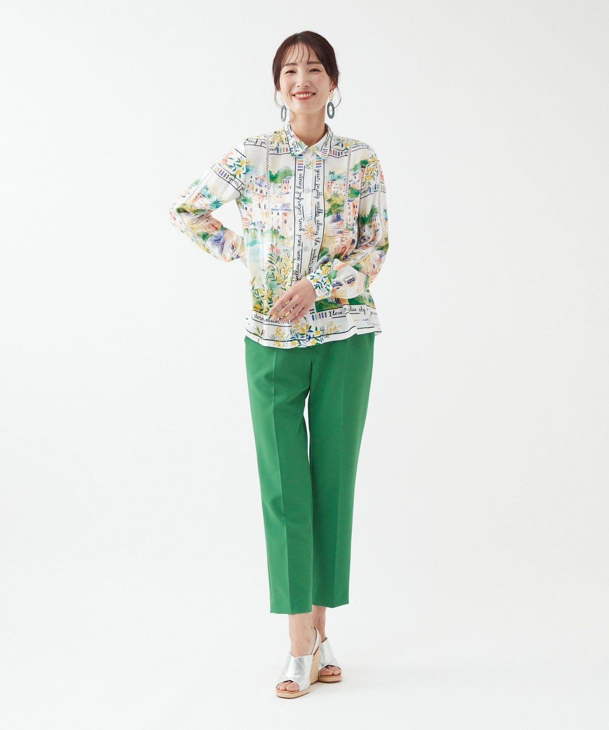 パネルプリントブラウス「Tableau Voyage」-Rossa-