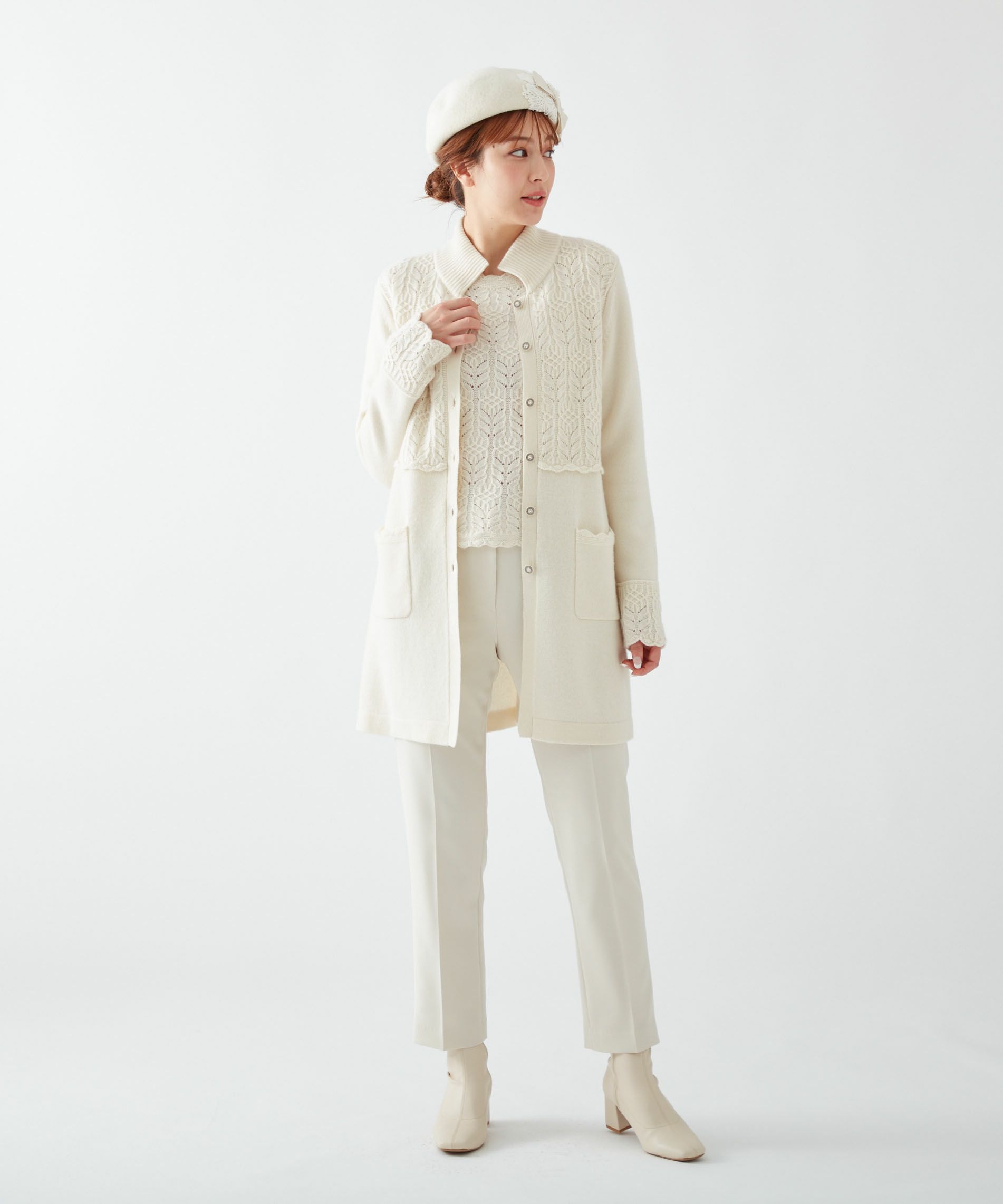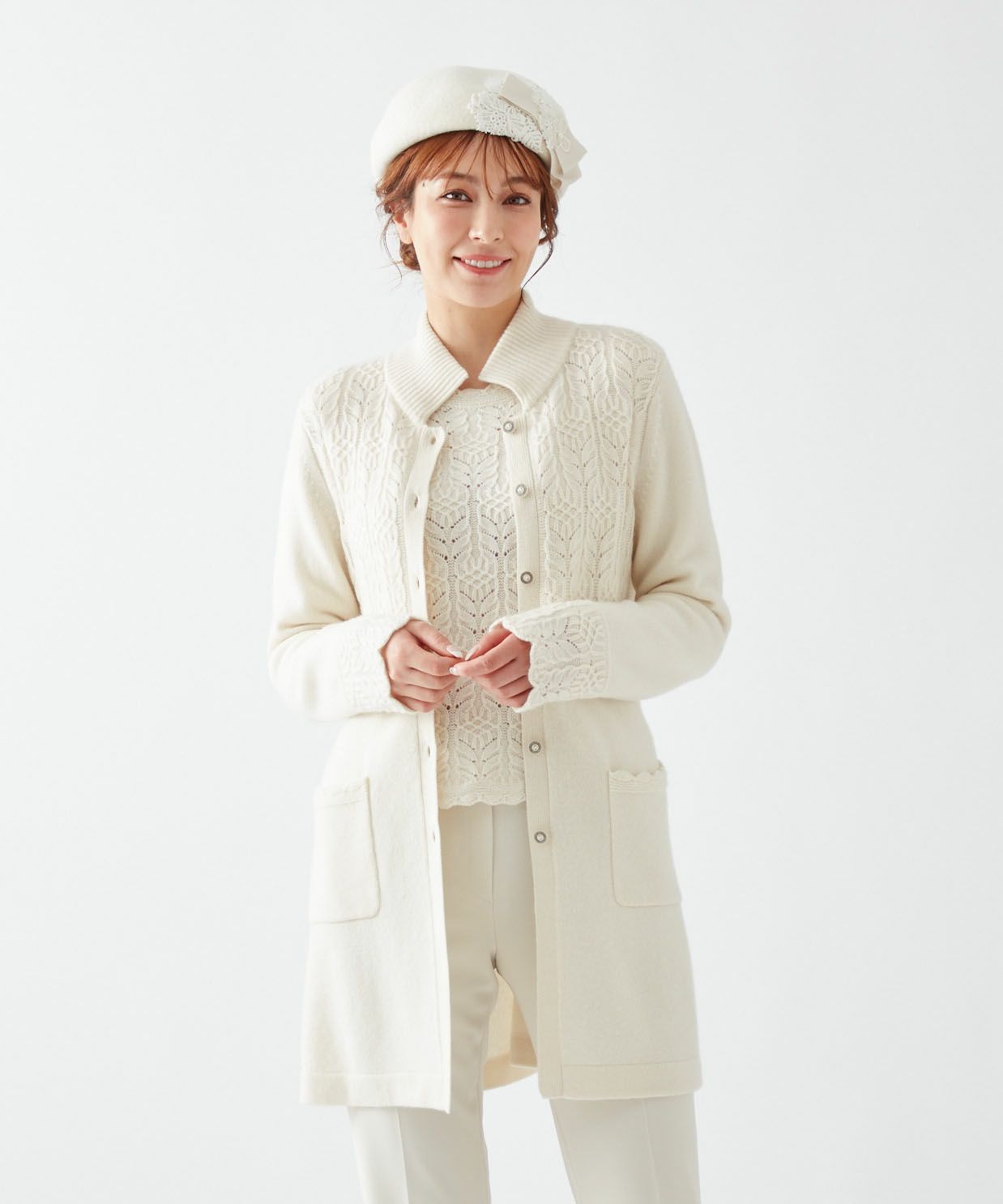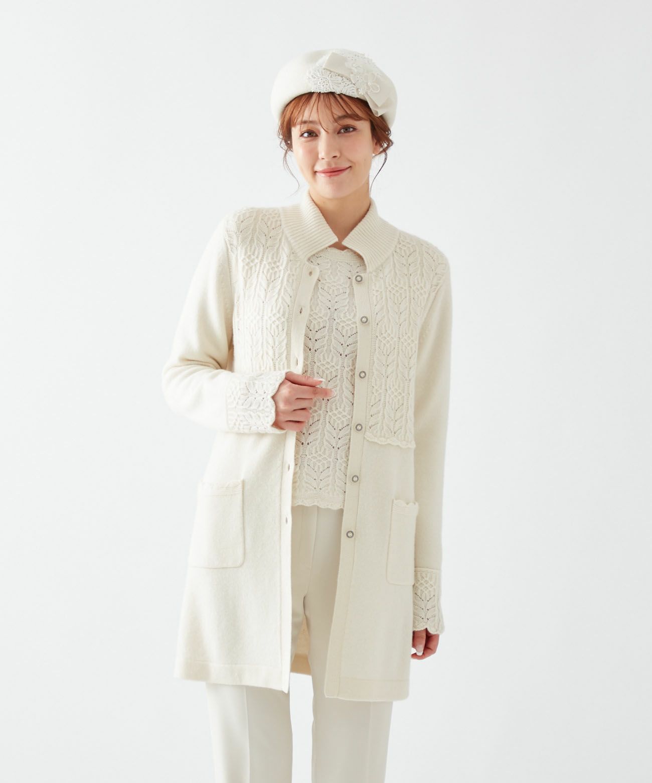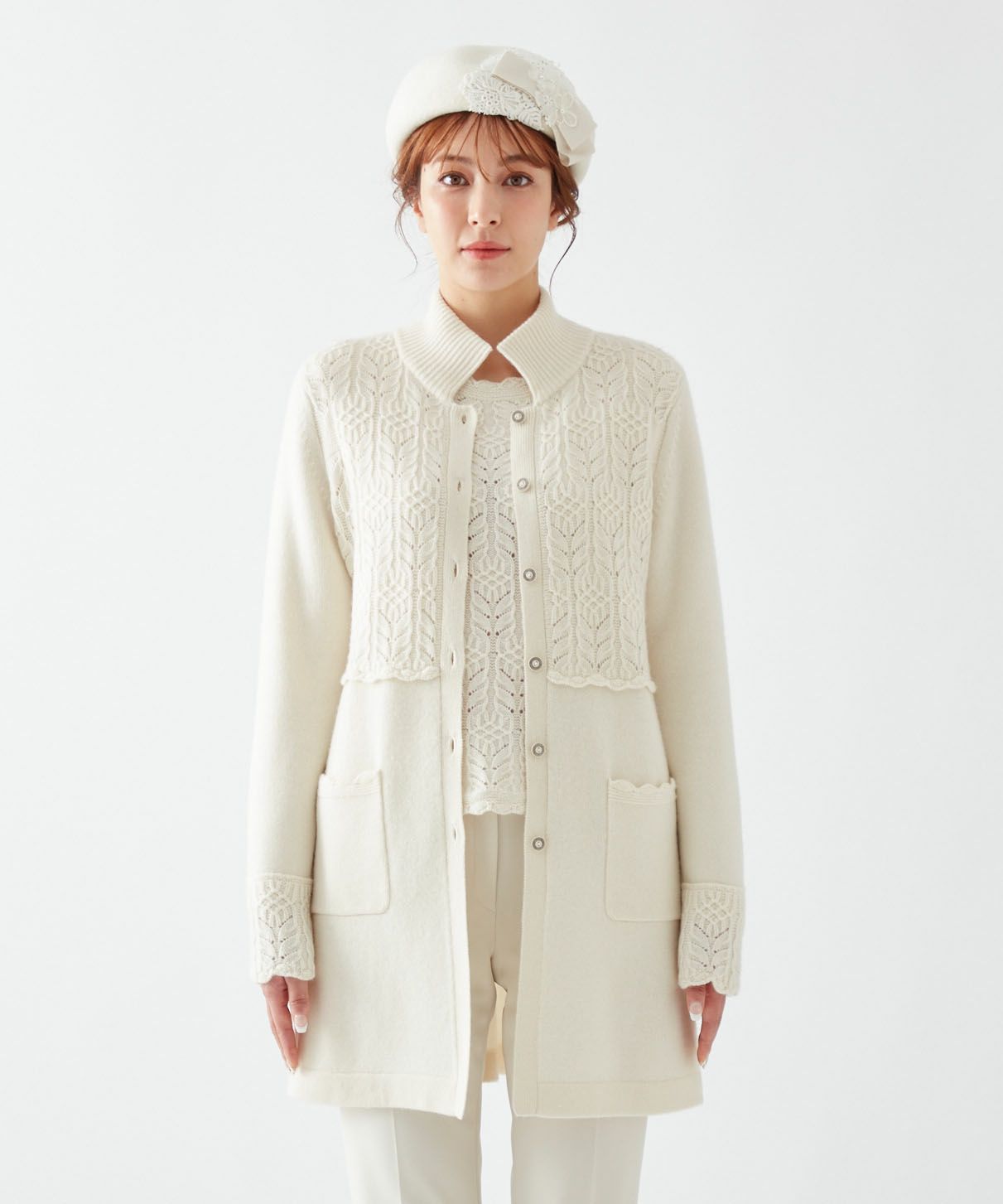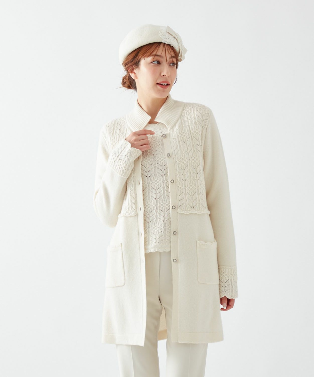 【Rossa】カシミヤ混ニットコート