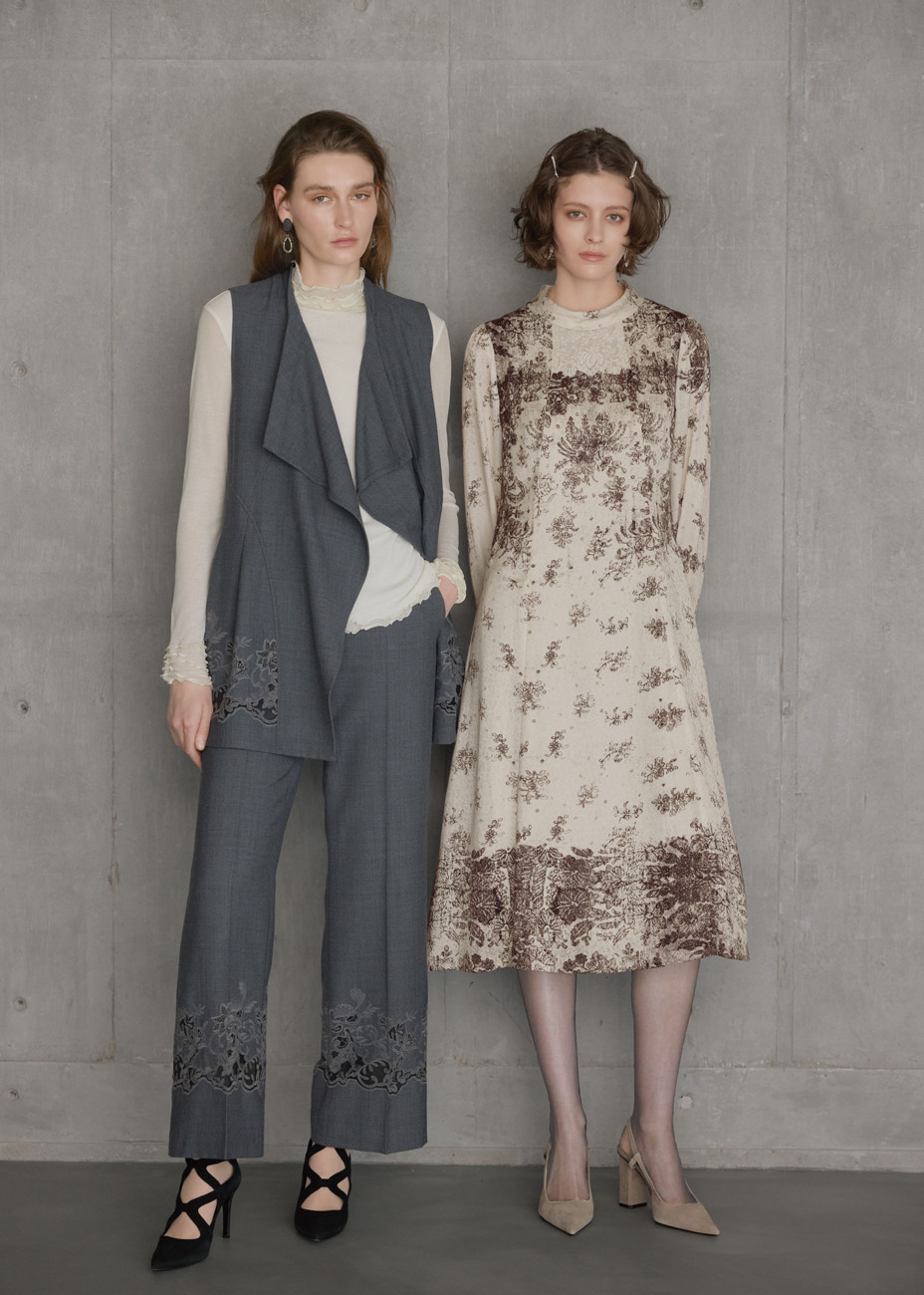 刺繍やレースなどを使用した高級素材を生かした、繊細なデザインが特徴。