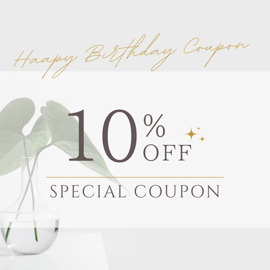 お誕生日のお客様へ、特別クーポンをご用意しました 2025.05.07お知らせ お誕生日月のお客様限定全商品にご利用いただける特別なクーポンをプレゼント会員登録の際には、お誕生日をご入力いただきますようお願い申し上げます。まだお誕生日のご登録がお済みでないお客様へご登録いただくことで、サービスをご利用いただけるようになります。この機会に是非、ご登録お願い致します。 一覧へ戻る